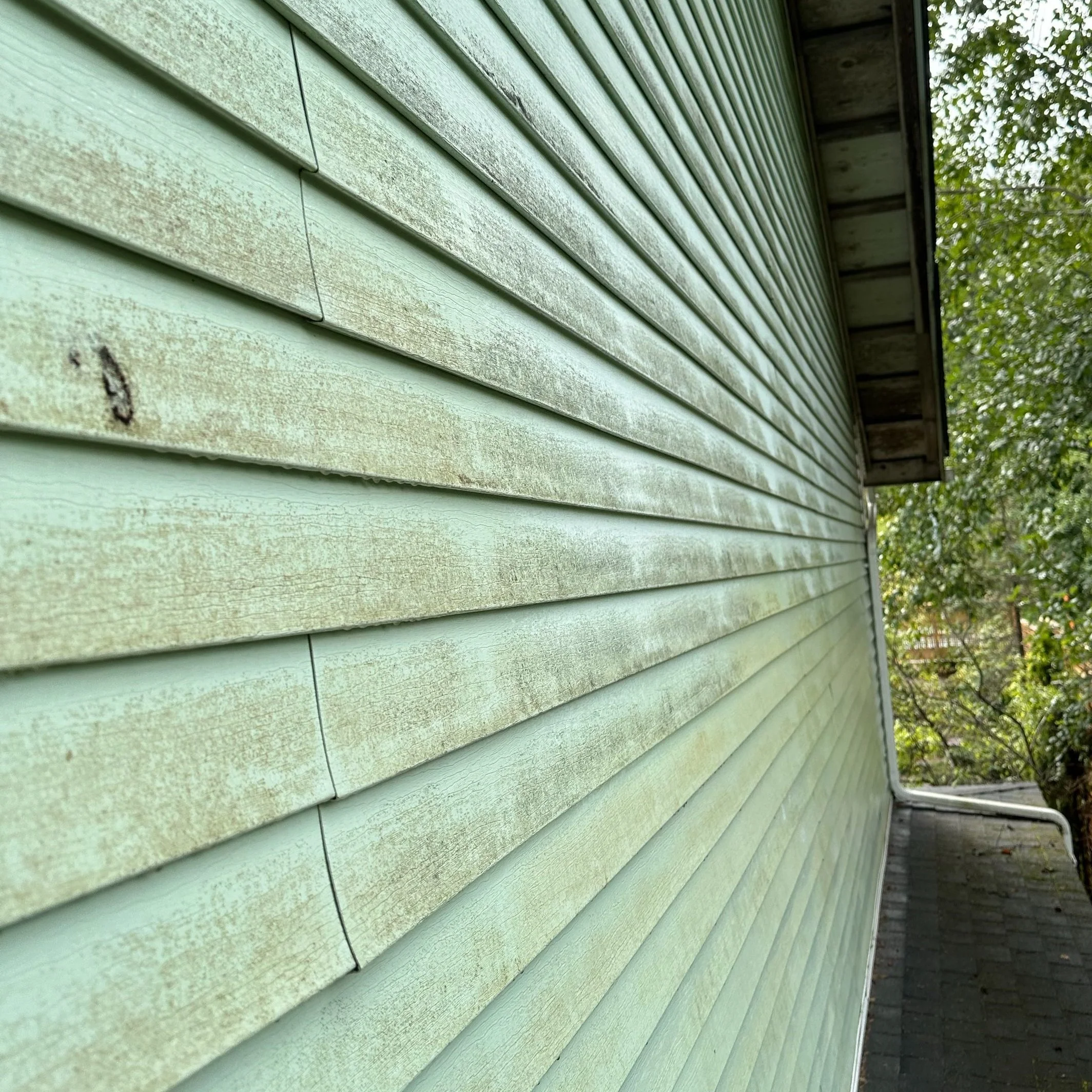Soft washing is a method of removing organic growth and loose debris from a surface. This technique involves spraying diluted bleach mixed with a special detergent (called surfactant) to kill any algae or moss. After some time, low pressure water is used to rinse away what remains. Soft washing is the manufacturer-recommended way of cleaning roofs and siding, and will not void any warranties, unlike pressure washing.